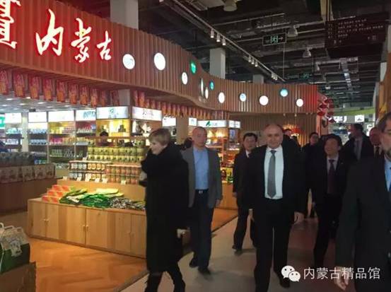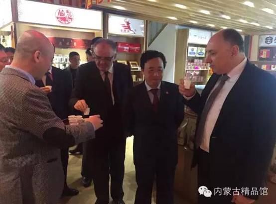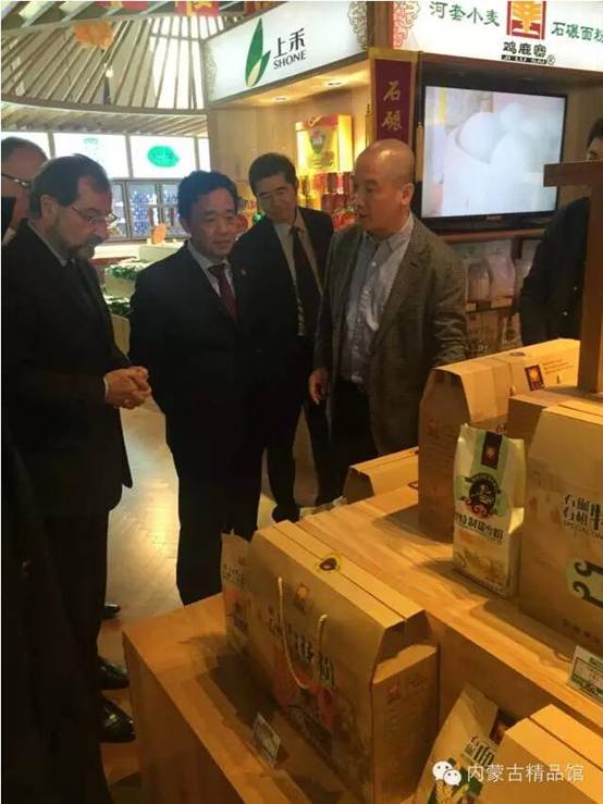 期間屈冬玉副部長(zhǎng)與中東歐國(guó)家駐華使館大使、外交部和質(zhì)檢總局等代表參觀內(nèi)蒙古精品館。