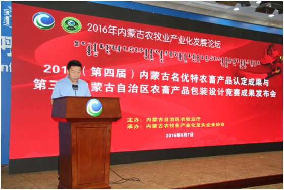 8月7日上午,第四屆內(nèi)蒙古“名優(yōu)特”農(nóng)畜產(chǎn)品認(rèn)定及第三屆內(nèi)蒙古自治區(qū)包裝設(shè)計(jì)競(jìng)賽成果發(fā)布會(huì)及內(nèi)蒙古農(nóng)牧業(yè)產(chǎn)業(yè)化論壇在內(nèi)蒙古國際會(huì)展中心盛大開幕。內(nèi)蒙古自治區(qū)農(nóng)牧業(yè)廳廳長郭健、副廳長云挨厚、產(chǎn)業(yè)化處處長侯雁冰、辦公室副主任黃偉,中國農(nóng)業(yè)產(chǎn)業(yè)化龍頭企業(yè)協(xié)會(huì)綜合部副主任程篤學(xué)、內(nèi)蒙古農(nóng)牧業(yè)產(chǎn)業(yè)化龍頭企業(yè)協(xié)會(huì)會(huì)長閆樹春,內(nèi)蒙古農(nóng)牧業(yè)產(chǎn)業(yè)化龍頭企業(yè)協(xié)會(huì)執(zhí)行會(huì)長兼秘書長林永亮,各盟市農(nóng)牧業(yè)局(產(chǎn)業(yè)化辦公室)負(fù)責(zé)人,精品館負(fù)責(zé)人,內(nèi)蒙古農(nóng)牧業(yè)產(chǎn)業(yè)化龍頭企業(yè)負(fù)責(zé)人,各參展企業(yè)負(fù)責(zé)人及包裝名優(yōu)特獲獎(jiǎng)企業(yè)負(fù)責(zé)人,協(xié)會(huì)辦事處負(fù)責(zé)人、會(huì)員單位等200余人出席會(huì)議,自治區(qū)農(nóng)牧業(yè)廳產(chǎn)業(yè)化處處長侯雁冰主持會(huì)議。本次會(huì)議特別邀請(qǐng)到中國農(nóng)業(yè)科學(xué)院農(nóng)產(chǎn)品加工研究所所長、黨委副書記戴小楓做主旨演講。