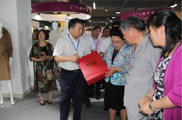 協(xié)會副會長、維信(內(nèi)蒙古)羊絨集團有限公司董事長為艾麗華副主席等領(lǐng)導介紹企業(yè)情況