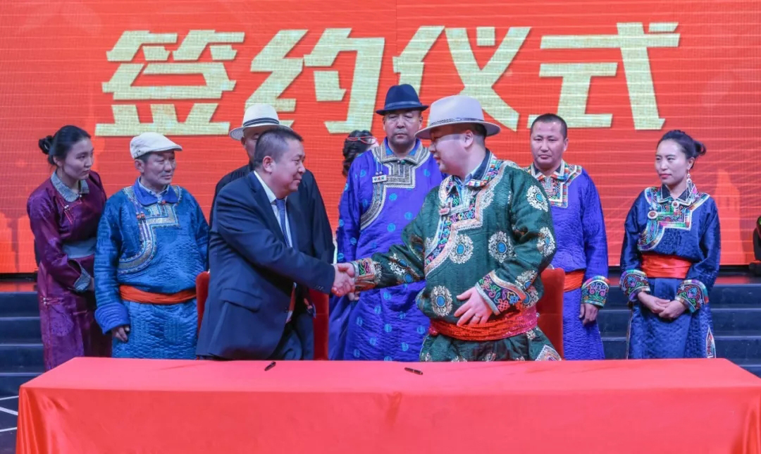 內(nèi)蒙古額爾敦羊業(yè)股份有限公司董事長(zhǎng)額爾敦木圖與牧民代表簽約