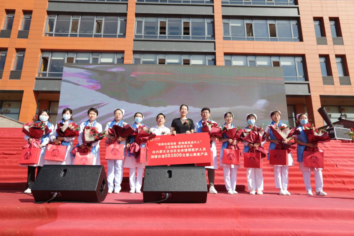 面對突如其來的疫情,無數(shù)醫(yī)護人員挺身而出,內(nèi)蒙古自治區(qū)共派出849名醫(yī)護人員參與援鄂行動,為了向抗疫英雄致敬,三主糧集團在開幕式現(xiàn)場舉行了捐贈儀式,向內(nèi)蒙古援鄂醫(yī)護人員捐贈了價值88.3809萬元的三主糧燕麥產(chǎn)品。