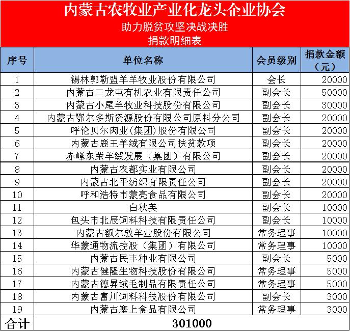 內(nèi)蒙古農(nóng)牧業(yè)產(chǎn)業(yè)化龍頭企業(yè)協(xié)會(huì),作為自治區(qū)各級(jí)產(chǎn)業(yè)化重點(diǎn)龍頭企業(yè)的聯(lián)合體,始終堅(jiān)持以習(xí)近平總書(shū)記“三農(nóng)”思想為根本遵循,圍繞協(xié)會(huì)“溝通、服務(wù)、自律、發(fā)展”的工作宗旨,發(fā)揮協(xié)會(huì)的橋梁和紐帶作用,堅(jiān)持為企業(yè)服務(wù)、為行業(yè)服務(wù)、為政府服務(wù)、為農(nóng)牧民服務(wù)。協(xié)會(huì)在自治區(qū)農(nóng)牧廳的指導(dǎo)下,將繼續(xù)堅(jiān)持投身助力內(nèi)蒙古脫貧攻堅(jiān)工作中,貢獻(xiàn)自己的力量。