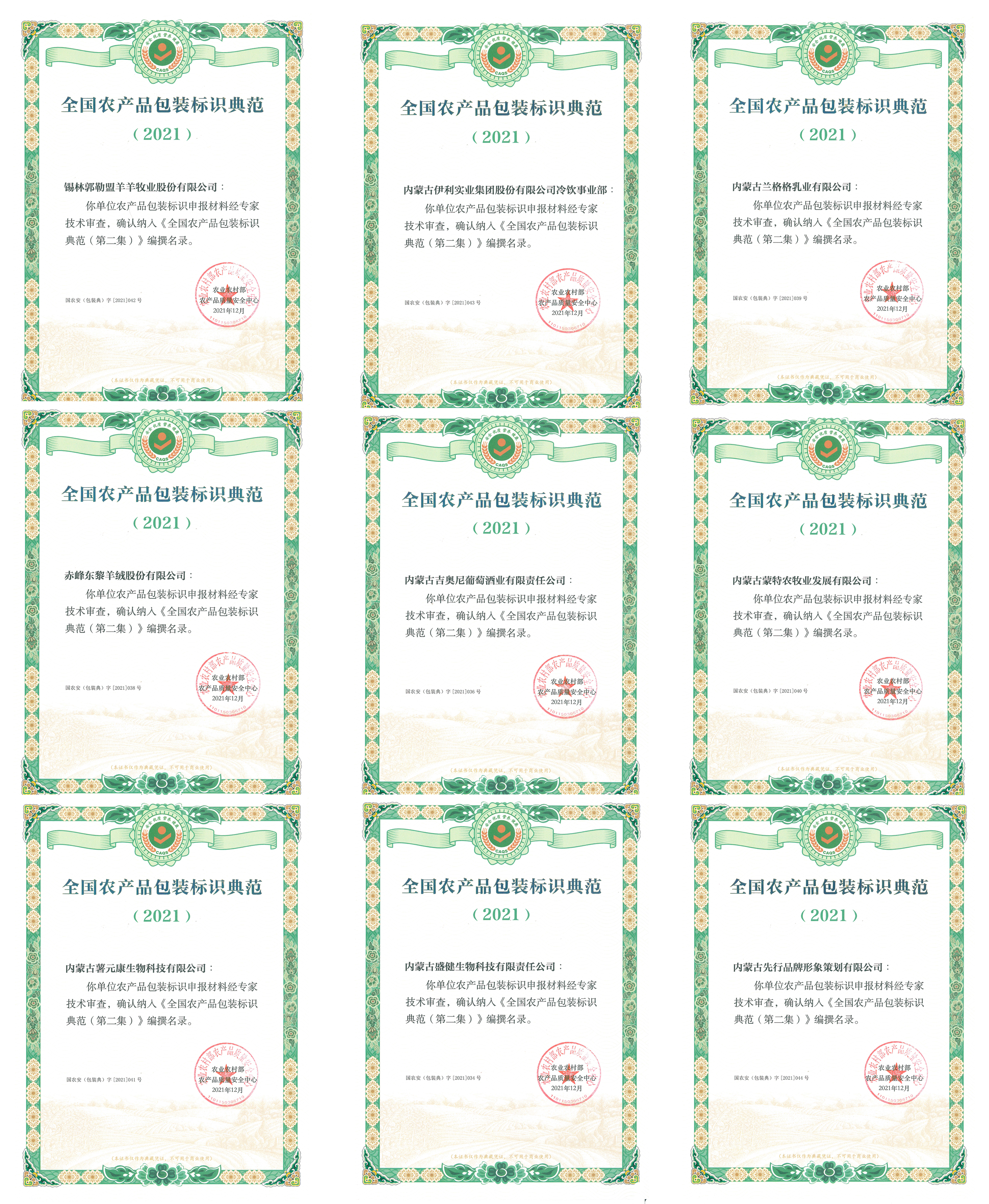 為幫助企業(yè)樹(shù)立品牌意識(shí),逐步提升我區(qū)農(nóng)畜產(chǎn)品的包裝水平和檔次,在內(nèi)蒙古自治區(qū)農(nóng)畜產(chǎn)品質(zhì)量安全中心的指導(dǎo)下,內(nèi)蒙古農(nóng)牧業(yè)產(chǎn)業(yè)化龍頭企業(yè)協(xié)會(huì)、內(nèi)蒙古綠色與有機(jī)食品協(xié)會(huì)已于2021年10月,順利完成“第六屆內(nèi)蒙古包裝設(shè)計(jì)競(jìng)賽”的評(píng)選和表彰工作。為了更好的宣傳展示內(nèi)蒙古優(yōu)質(zhì)農(nóng)畜產(chǎn)品的品牌形象,由內(nèi)蒙古自治區(qū)農(nóng)畜產(chǎn)品質(zhì)量安全中心推薦,經(jīng)國(guó)家農(nóng)安中心組織專(zhuān)家評(píng)審,有9家經(jīng)協(xié)會(huì)評(píng)選的包裝設(shè)計(jì)企業(yè)成功納入《2021年全國(guó)農(nóng)產(chǎn)品包裝標(biāo)識(shí)典范名錄》。據(jù)了解,入選目錄的企業(yè),經(jīng)授權(quán),可以在審定的包裝上使用其中心標(biāo)識(shí)。
