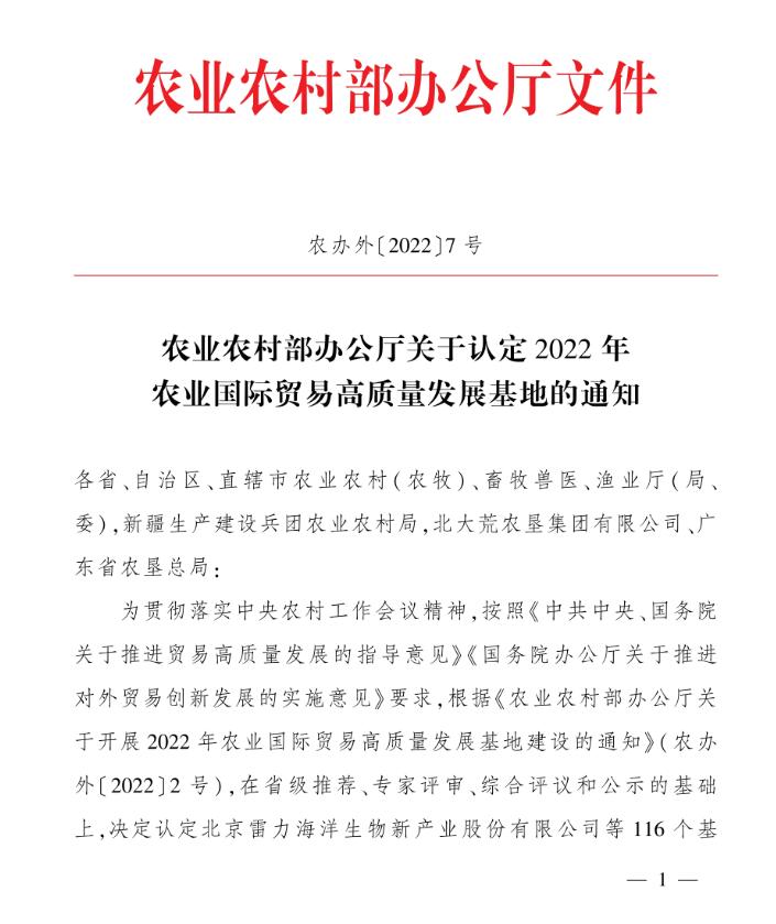 標題:祝賀:我區(qū)5家企業(yè)被認定為2022年度農業(yè)國際貿易高質量發(fā)展基地