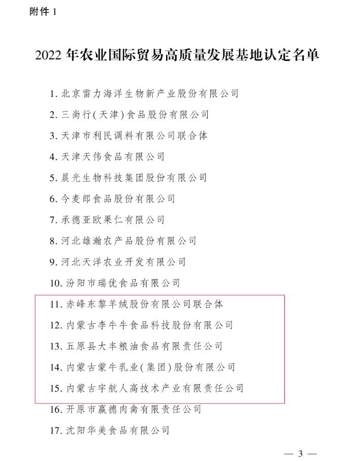 8月29日,農業(yè)農村部辦公廳印發(fā)《關于認定2022年農業(yè)國際貿易高質量發(fā)展基地的通知》,認定116個基地為2022年農業(yè)國際貿易高質量發(fā)展基地,其中,內蒙古5家企業(yè)上榜。