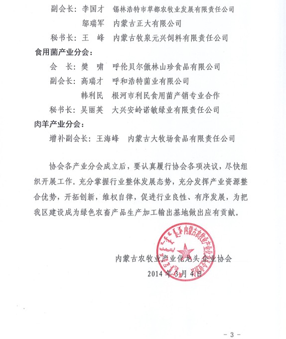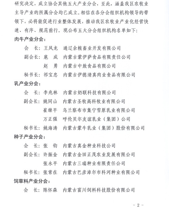 關(guān)于成立內(nèi)蒙古農(nóng)牧業(yè)產(chǎn)業(yè)化龍頭企業(yè)協(xié)會各大產(chǎn)業(yè)分會的通知