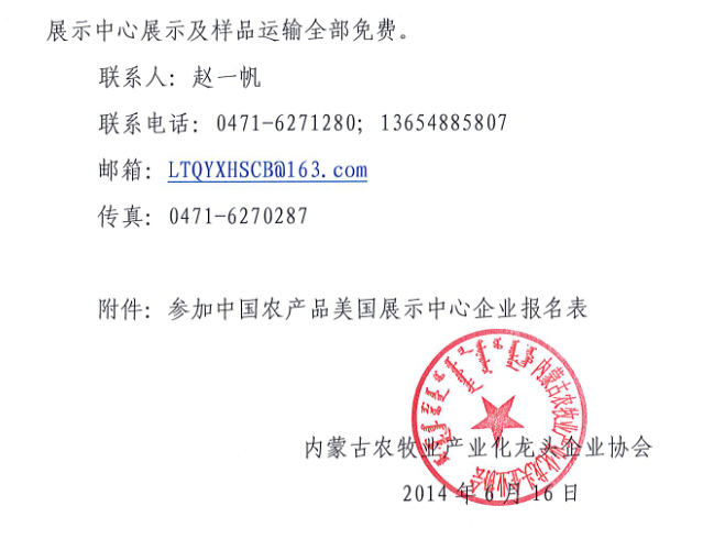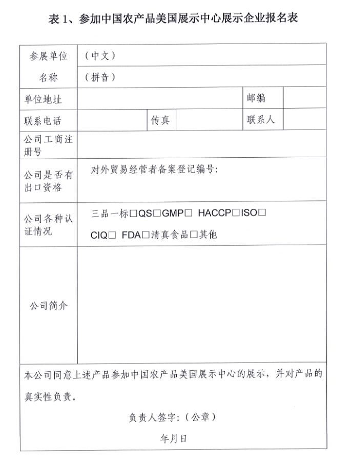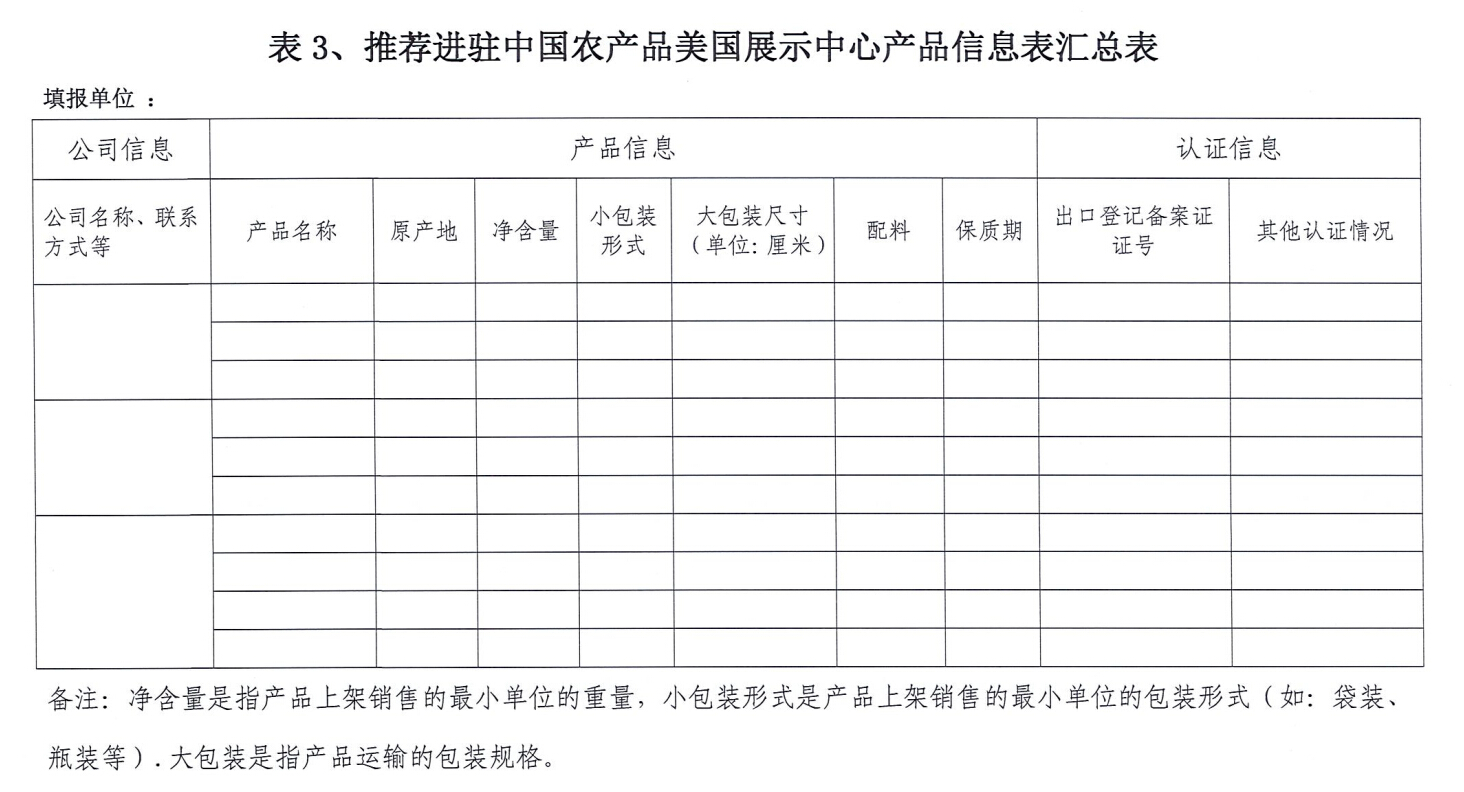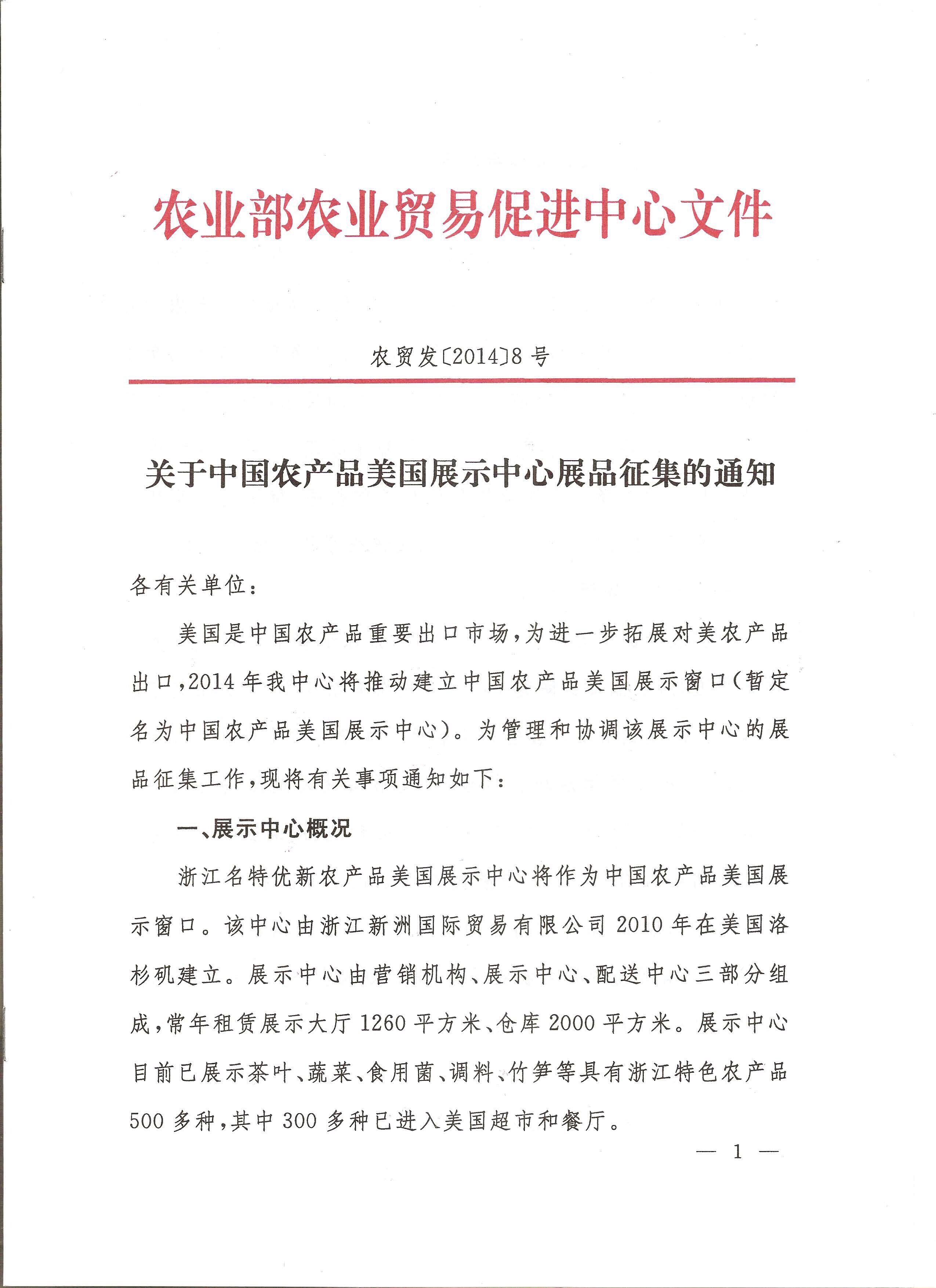 關(guān)于中國農(nóng)產(chǎn)品美國展示中心展品征集的通知