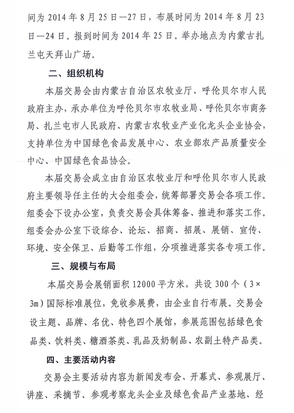 關(guān)于舉辦2014內(nèi)蒙古(扎蘭屯)第七屆綠色食品交易會(huì)的通知
