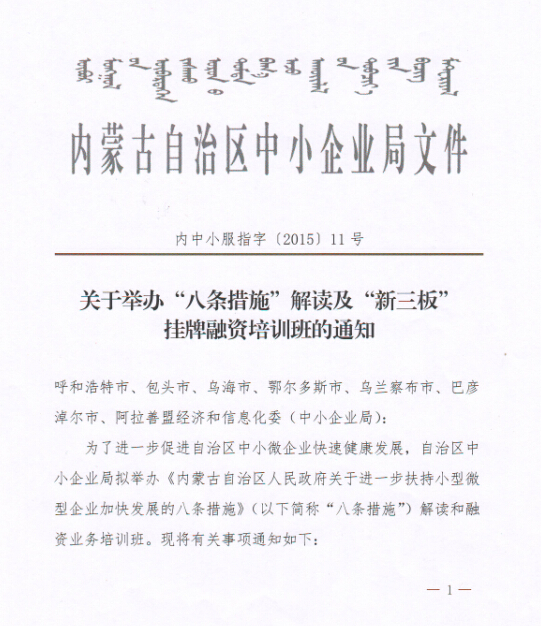 關于組織會員單位參加“八條措施”解讀及“新三板”掛牌融資培訓班的通知