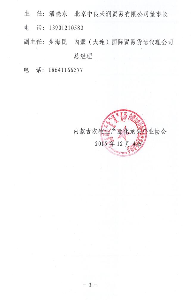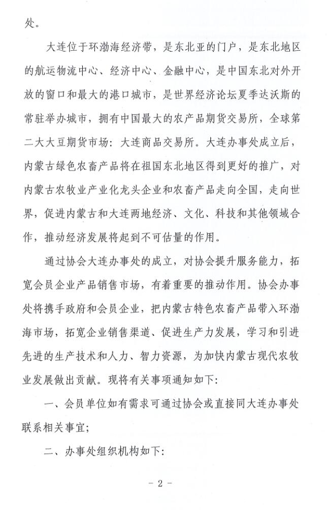 關(guān)于成立內(nèi)蒙古農(nóng)牧業(yè)產(chǎn)業(yè)化龍頭企業(yè)協(xié)會大連辦事處的通知