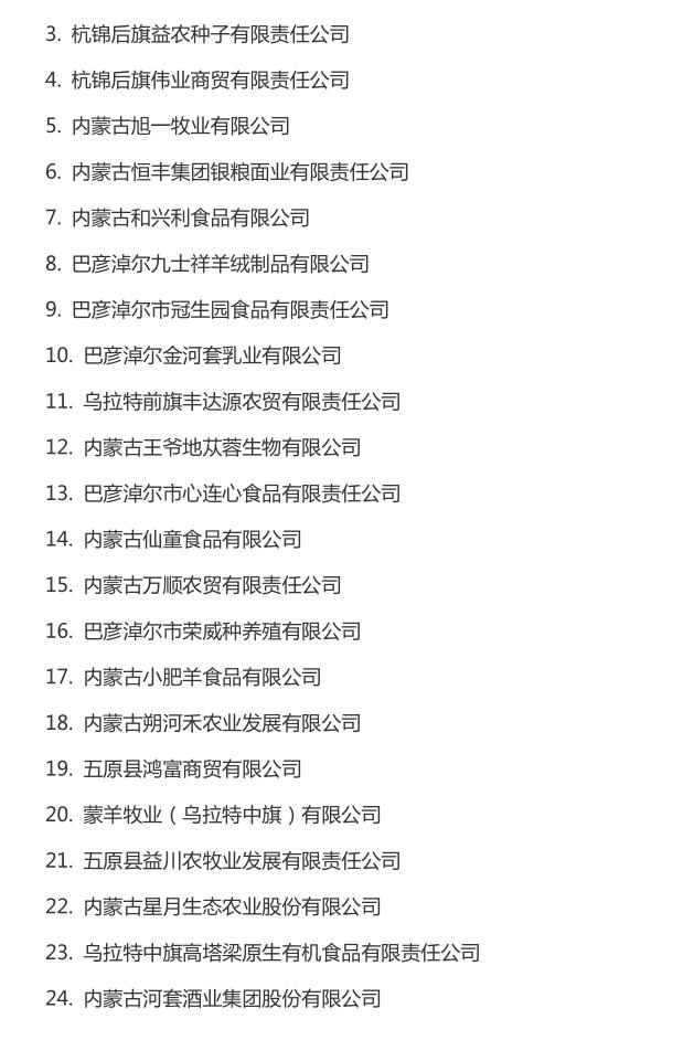 企業(yè)名稱:截止2016年末自治區(qū)級農(nóng)牧業(yè)產(chǎn)業(yè)化 重點龍頭企業(yè)名單​